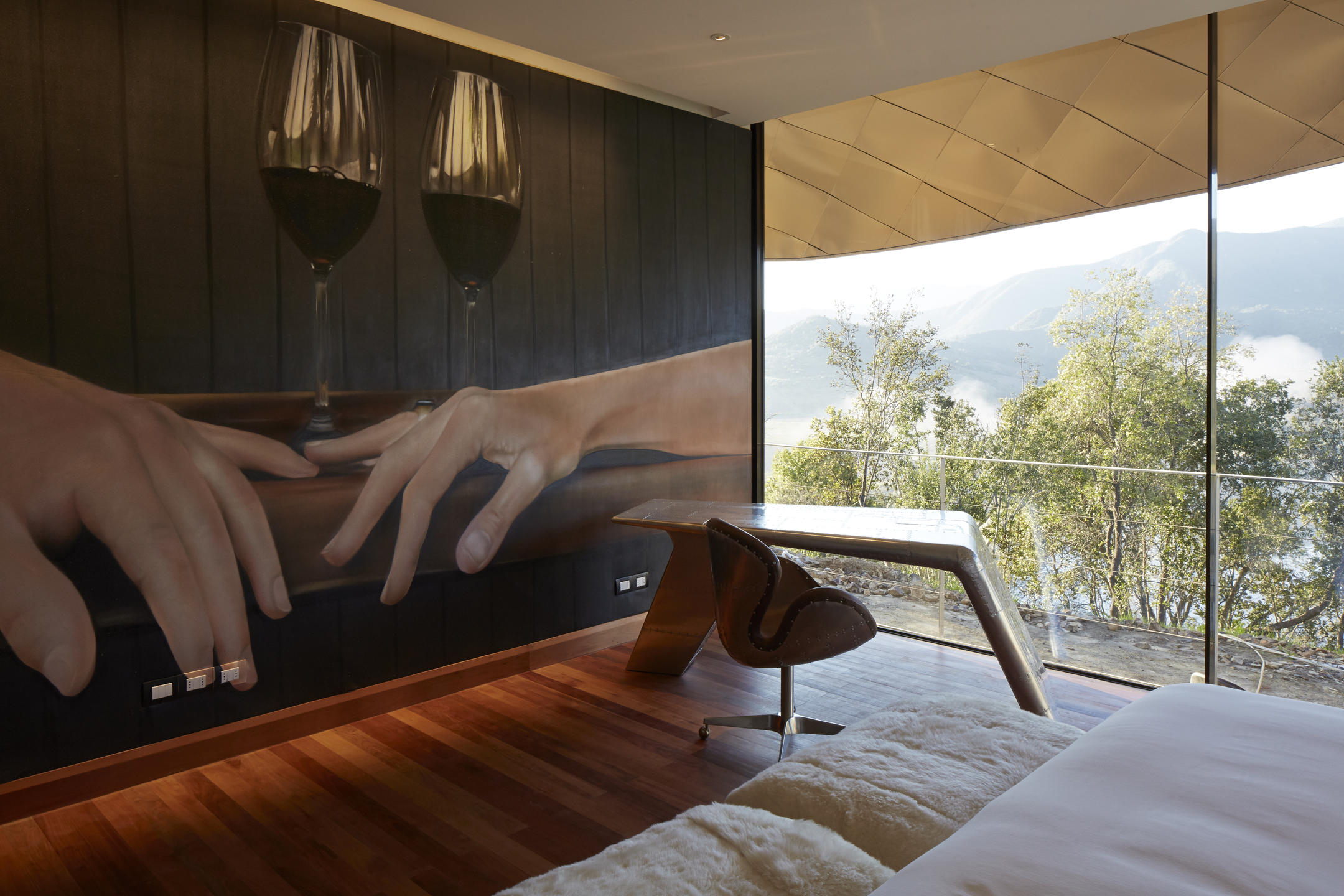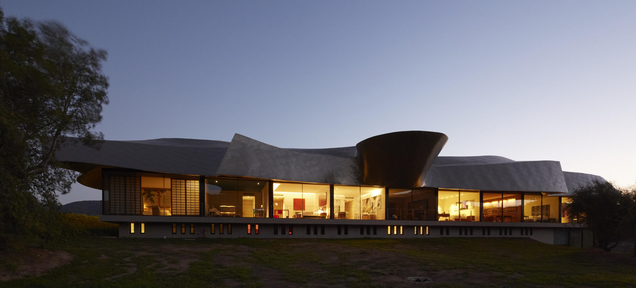 Viña Vik is an avant-garde retreat and wine-spa that merges incomparable location and natural setting and warm authentic service, showcasing cutting-edge architecture and art. The building is transparent and has a floating sculptural roof of bronzed titanium inspired by the surrounding mountains, the wind, and the work of Frank Gehry and Richard Serra. Its design is focused on minimizing the need for energy use by maximizing natural resources. Guests are invited to discover an unparalleled retreat and vineyard experience, through its gastronomy, that highlight the Chilean terroir, a horseback riding, trekking or mountain biking. To unwind and indulge themselves at the wine spa, with treatments inspired by the land and incorporating VIK grapes into one-of-a-kind massage, facial and body-scrub treatments.